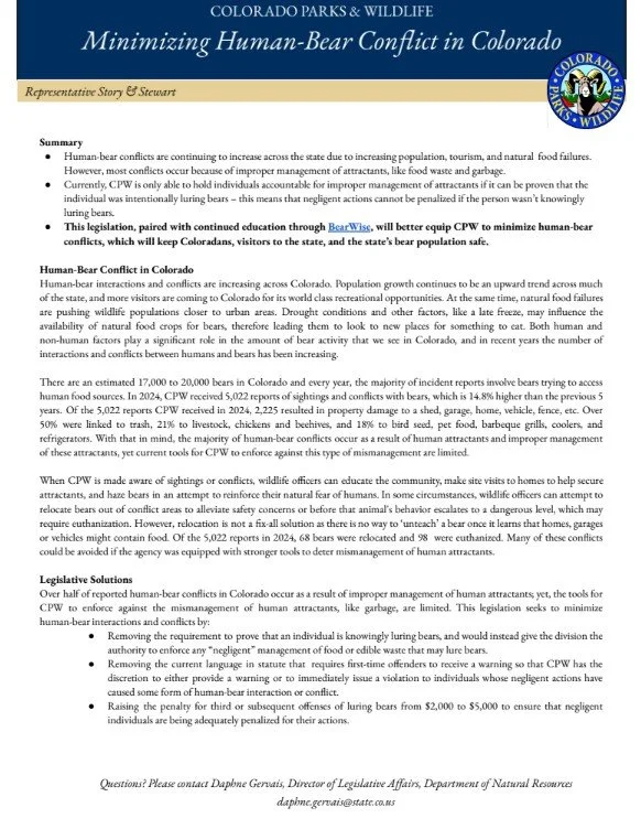If passed, this legislation will prevent unnecessary conflicts and save more bears from relocation or euthanasia across Colorado.